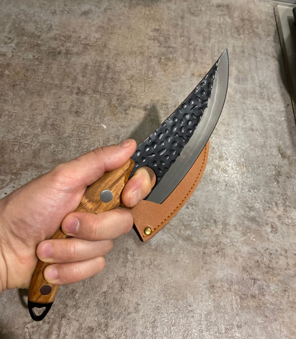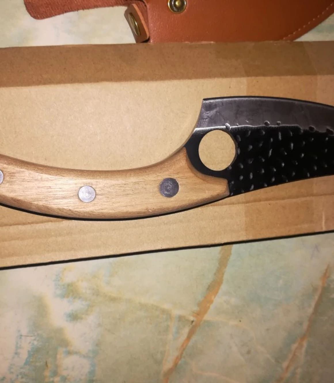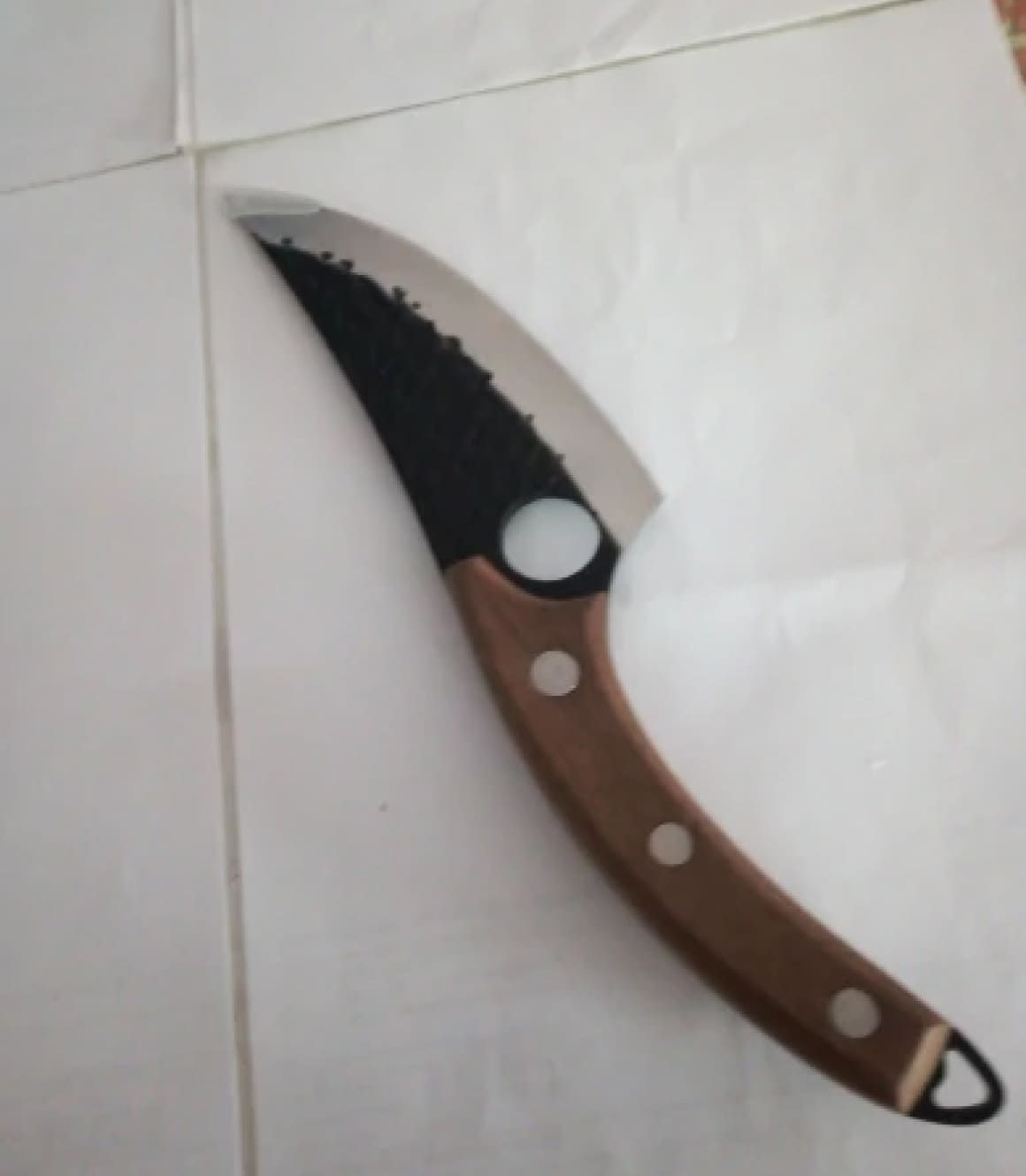Nož je kao na reklami. Oštar i spreman za upotrebu. Rupa na dnu oštrice daje odličnu ravnotežu prilikom korištenja i uveren sam da će zadržati oštrinu dugo vremena. Naručiću kamen za oštrenje da imam ako mi ikada zatreba.
