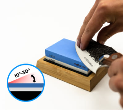 Grove korn Siden med grove korn på slibestenen er perfekt til at give kanten på klingen den oprindelige form tilbage.